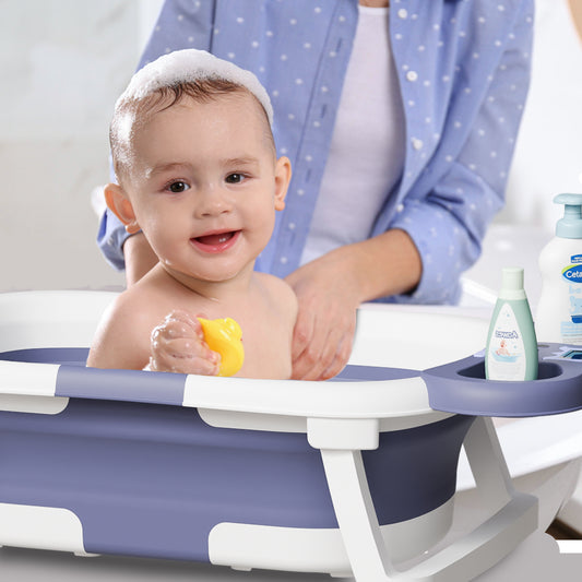 Aprpink Foldable Baby Bathtub Elephant PP+TPE with Soft Cushion&Thermometer for 0-36 Months Toddler Blue