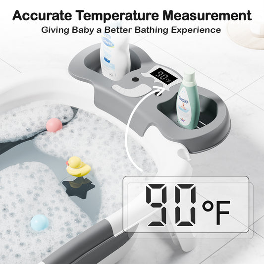Aprpink Foldable Baby Bathtub Elephant PP+TPE with Soft Cushion&Thermometer for 0-36 Months Toddler Blue/Gray/Pink