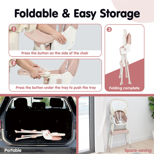 Aprpink 6 in 1 Baby Convertible High Chair with 5 Point PU Safety Harness, Pink Striped, 1 Piece