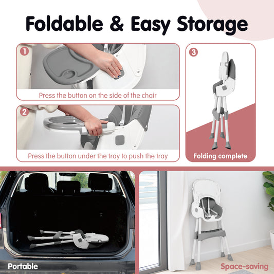 Aprpink 6 in 1 Baby Convertible High Chair Seat with 5 Point PU Safety Harness Gray Striped