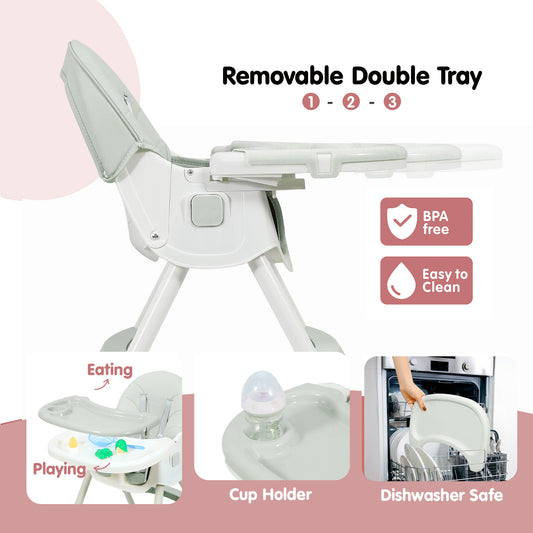 Aprpink 6-in-1 Baby Convertible High Chair with 5-Point PU Safety Harness, Gray/Pink/Green Striped, 1 Piece